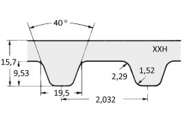 Ozubený řemen XXH 1200 - 200 řemen ozubený optibelt ZR je vysoce výkonný chlorprenový řemen. Typové označení výrobce optibelt je 1200 XXH 200. Profil XXH definuje rozteč zubů 31,75 mm a výšku 15,7 mm. Ozubený řemen je dlouhý 3048 mm a má šířku 50,8 mm. Šířka může být na přání libovolně upravena. Přesný počet zubů je 96 ks, pomůže nám tak určit délku. Obchodní označení ZR. ProPrumysl.cz je dodavatel speciálních řemenů nejvyšší kvality pro všechny druhy provozu. Tisíce kusů skladem a rychlá expedice zaručí Vaši spokojenost.